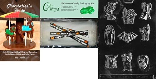 Cybrtrayd "Assorted with House" Chocolate Mold with Chocolatier's Bundle, Includes 25 Cello Bags and 25 Happy Halloween Twist Ties