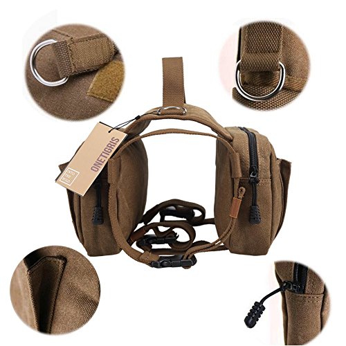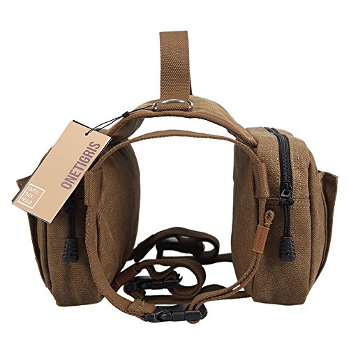 -. Title : OneTigris Cotton Canvas Dog Pack Hound Travel Camping Hiking Backpack Saddle Bag Rucksack for Medium & Large Dog