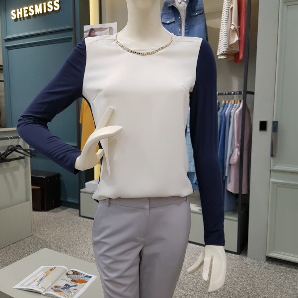 배색 블라우스입니다.