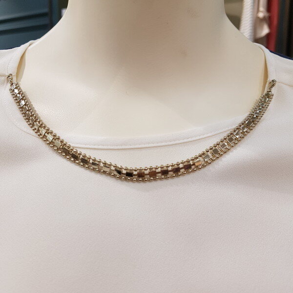라운드넥 비즈장식이 포인트인