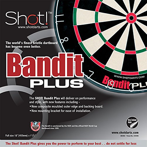 - Title : Shot! Bandit Plus staple free tournament grade sisal bristle dartboard