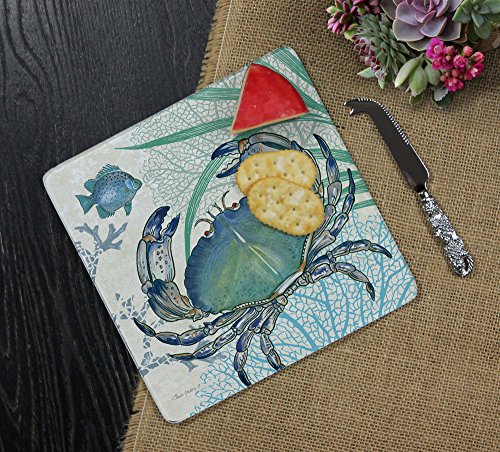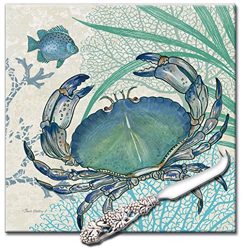 CounterArt 'Oceana' 8-Inch Square Glass Cheese Board with Cheese Knife