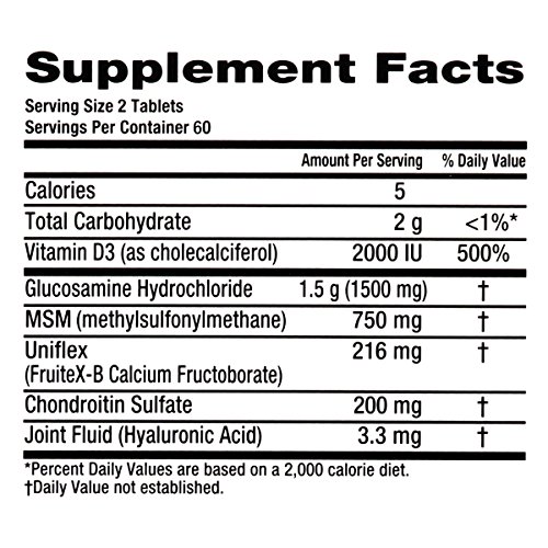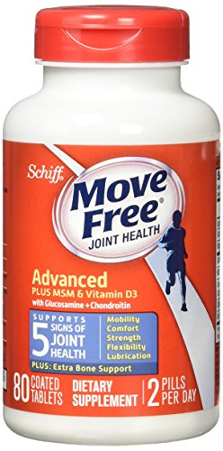 Move Free Glucosamine Chondroitin MSM & Vitamin D3 joint supplements contain premium-quality ingredients, including glucosamine, chondroitin, uniflex, hyaluronic acid, MSM and Vitamin D3 to promote the health of your bones and joints. Move Free Glucosamine Chondroitin MSM & Vitamin D3 promotes joint flexibility, comfort and lubrication.