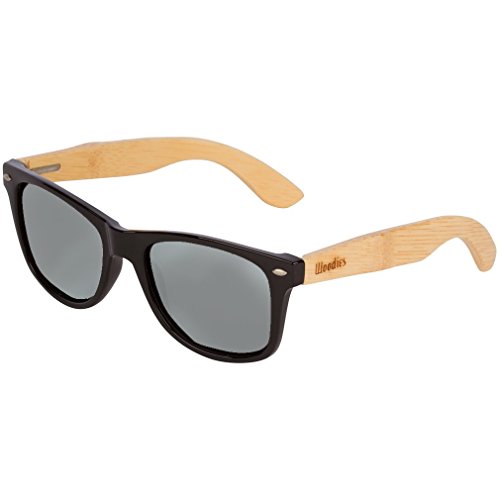 -. Brand : Woodies -. Department : unisex-adult -. Feature : Handmade from REAL Bamboo Wood (50% Lighter than Ray-Bans) / Includes FREE Carrying Case, Lens Cloth, and Wood Guitar Pick / Polarized Lenses Provide 100% UVA/UVB Protection / 30-Day Money Back Guarantee / Proud Member of 1% for the Planet. Woodies donates 1% of revenue to the Surf Rider Foundation Protecting Our Planets Oceans and Beaches -. ProductGroup : Apparel -. ProductTypeName : EYEWEAR -. Title : WOODIES Bamboo Wood Sunglasses with Mirror Lens