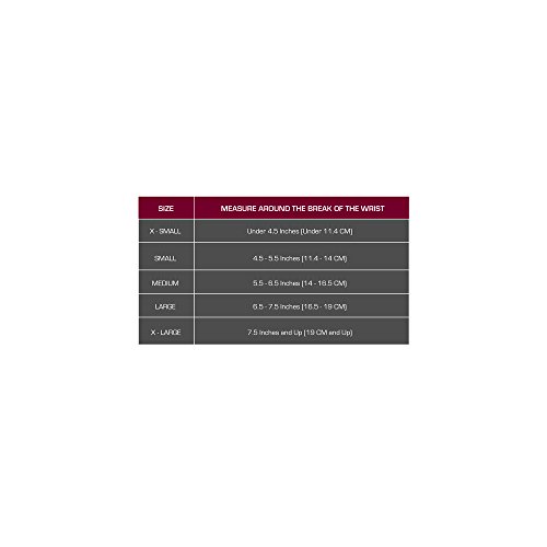 Measure around the break of the wrist. Available Sizes: X-Small (Under 4.5 Inches), Small (4.5-5.5 Inches), Medium (5.5-6.5 Inches), Large (6.5-7.5 Inches), and X-Large (7.5 Inches and Up).