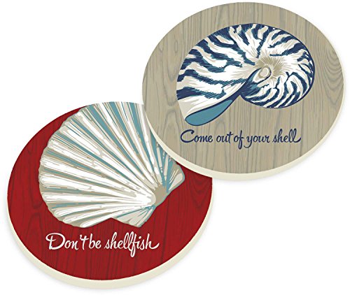 Don't Be Shellfish Come Out Of Your Shell Ocean Ceramic Car Coaster Pack (Set of 2)