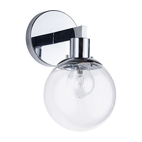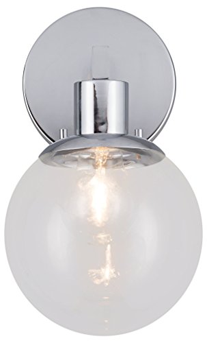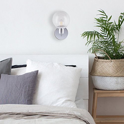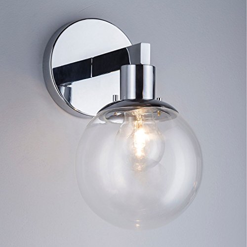 Sferra Wall Light Sconce with LED Edison Bulb Included. Polished Chrome with Globe Glass Shade. Modern Industrial Factory Style. UL Listed, Linea di Liara LL-SC225-PC