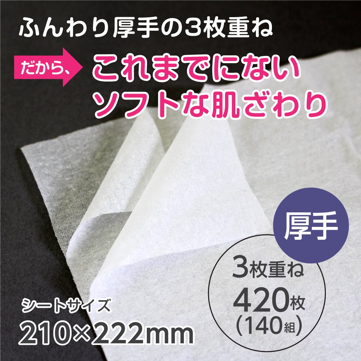 Apply natural silk ingredients to both sides, realize a smooth and soft texture.