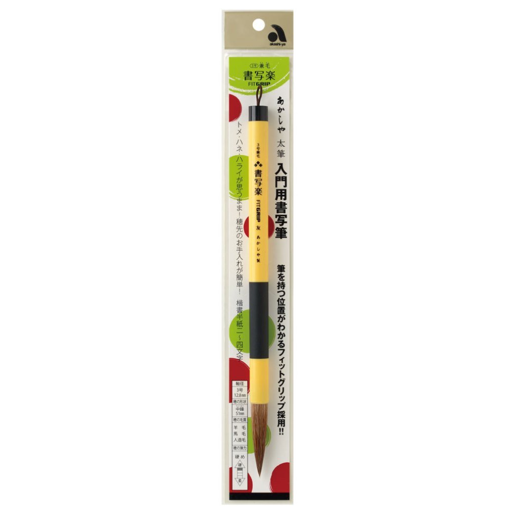 Calligraphy brush's cum in hair Sharaku FITGRIP Friend No. 3 supports the correct brush hold by rubber material grip showing the position with the brush.