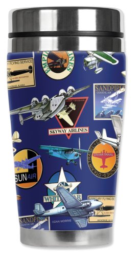 Mugzie Airplanes Travel Mug with Insulated Wetsuit Cover, 16 oz, Black