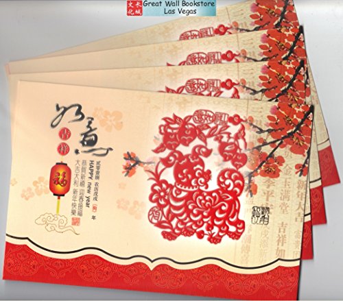 (Great Wall Bookstore, Las Vegas)/Stationery Party Supplies/Stationery/DIRECT FROM USA/2018 Year of the Dog Chinese Lunar New Year Greeting Cards with Envelopes Pack #7Y - 4 cards total