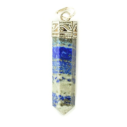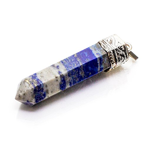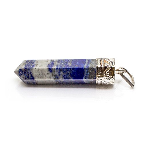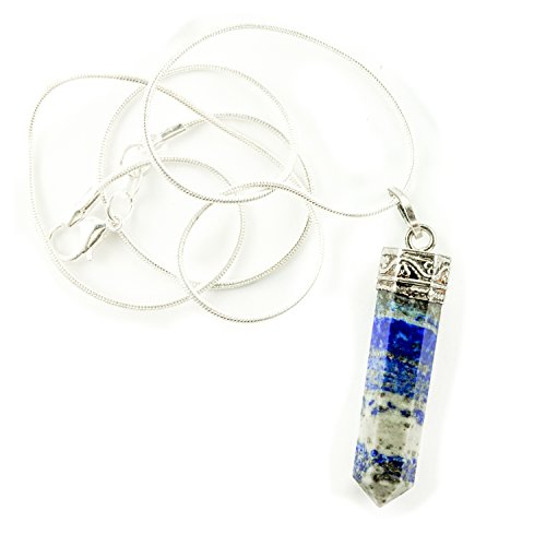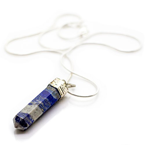 Raw Lapis Lazuli Crystal Pendant Necklace –Success Intuition Self Expression Natural Stress Aid Soothe Mind Emotions - Authentic Stone on Silver Plated 18" Chain Real Gemstone Chakra Healing Charm
