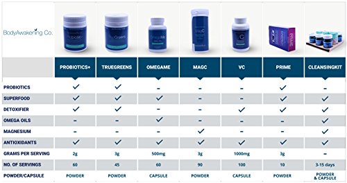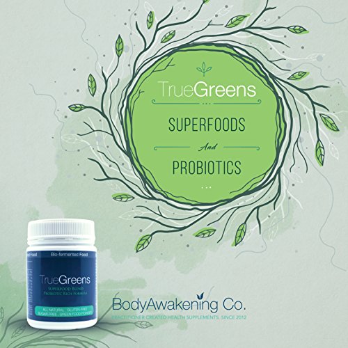-. Feature : PERFECT DAILY PRODUCT FOR BUSY PEOPLE containing Spirulina, Chlorella, Alfalfa grass, Wheatgrass, Mung beans, Carrot, Beetroot and probiotics / 10 BILLION PROBIOTICS PER SERVING containing 8 different strains of probiotic bacteria / BIO-FERMENTED & FREEZE-DRIED. This product does not need to be kept in the fridge making it ideal for home use, at the office or during travel. To ensure the stability and shelf life of the probiotics and other ingredients in TrueGreens we use an advanced medical grade freeze-drying technique, which makes the product stable at room temperature / MILD FLAVOR which mixes perfectly into a glass of water, juice or smoothie / AIDS DIGESTIVE PROBLEMS AND INFLAMMATION, as well as skin irritation, bloating, constipation and many other digestive complaints. PERFECT DAILY DETOXIFIER. GLUTEN FREE