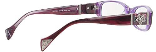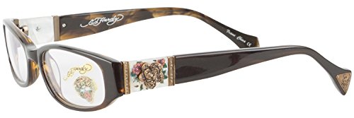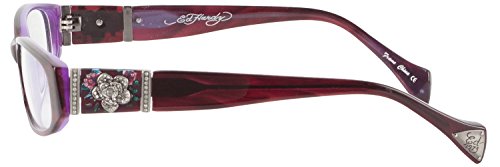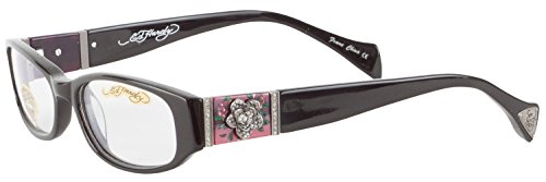The Ed Hardy EHO728A Designer Eyeglasses is a hot stylish eyeglasses. This Ed Hardy eyeglasses features a rectangle plastic frame, clear plastic lens, Rhinestone Flower detail and Ed Hardy logo on temples. The Ed Hardy EHO-728A eyeglasses will give you that perfect finishing touch. Designer Ed Hardy eyewear are a sought after collection. Ed Hardy's elegance can be seen in every eye glasses. Authenticity Guaranteed or you get 100% of your money back.Feature
