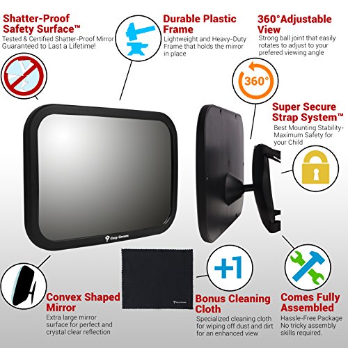- Title : Cozy Greens 360 Adjustable View Super Secure Strap System Back Seat Mirror with eBook on Traveling with Kids and Specialized Cleaning Cloth