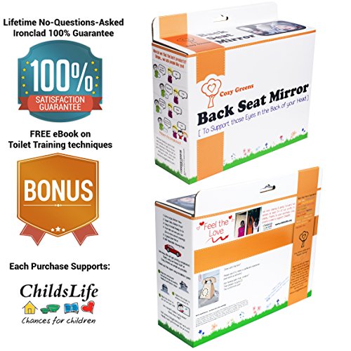 - Feature : 1. GENUINE COZY GREENS® PRODUCT: All Original Cozy Greens products come with a LIFETIME GUARANTEE. If you have ANY problems with your Cozy Greens Back Seat Mirror FOR THE LIFETIME OF THE PRODUCT simply let us know and we will refund every penny of your purchase plus ship you another brand new unit FREE of charge. / 2. CRASH TESTED AND CERTIFIED: our Super Secure Strap System™ fixes the mirror to your headrest with maximum stability and safety, and we have proven it by passing a crash test in an independent testing facility. Our solid one-assembly construction gives you both the simplest installation process, and the most secure installation. As parents of two, we know that safety comes first for anything you put near your child. Don't settle for less! / 3. THE CLEAREST VIEW: We have specially designed our mirror using our Crystal Clear Convex Shaped™ mirror surface to allow you to see your child perfectly under any viewing angle. We know how important it is to have this peace of mind while driving. As a FREE bonus we will include a special cleaning cloth with your purchase, perfect for cleaning your mirror without scratching the surface. / 4. OPEN UP A NEW WORLD - Unpack your Cozy Greens® Backseat Mirror from its beautiful Gift Box, and enjoy how the mirror attaches in seconds: no assembly required. Notice how your child's world expands by using this mirror! Through the mirror he or she will be able to see traffic lights, nature, YOU, and a million other things. Stop at a traffic light, and throw your little one a gentle smile. With a little luck, you will get a lovely smile back! / 5. OVER 5% OF PROFITS GO TO CHARITY: THERE ARE A LOT OF NOBLE PEOPLE OUT THERE WHO HELP OTHERS TO HAVE A BETTER LIFE. WE BELIEVE YOU ALSO LIKE TO SEE PEOPLE DO BETTER, AND DO WHAT YOU CAN TO MAKE THAT HAPPEN. AT THE SAME TIME YOU WANT THE BEST PRODUCTS YOU CAN GET FOR YOUR FAMILY. PURCHASING FROM COZY GREENS GIVES YOU THE BEST OF ALL WORLDS. FOR A GREAT PRICE, YOU GET THE PRODUCT YOU'VE BEEN SEARCHING FOR AND YOU HELP THE MAKE THE WORLD A BETTER PLACE AT THE SAME TIME. WE ARE PRETTY SURE YOU WOULD HELP SOMEONE WHO WAS STANDING IN FRONT OF YOU IF THEY ASKED FOR YOUR HELP. WELL, THAT'S WHAT WE'RE DOING HERE. DON'T WAIT! ORDER YOUR COZY GREENS BACK SEAT MIRROR NOW AND HELP US TO HELP OTHERS!