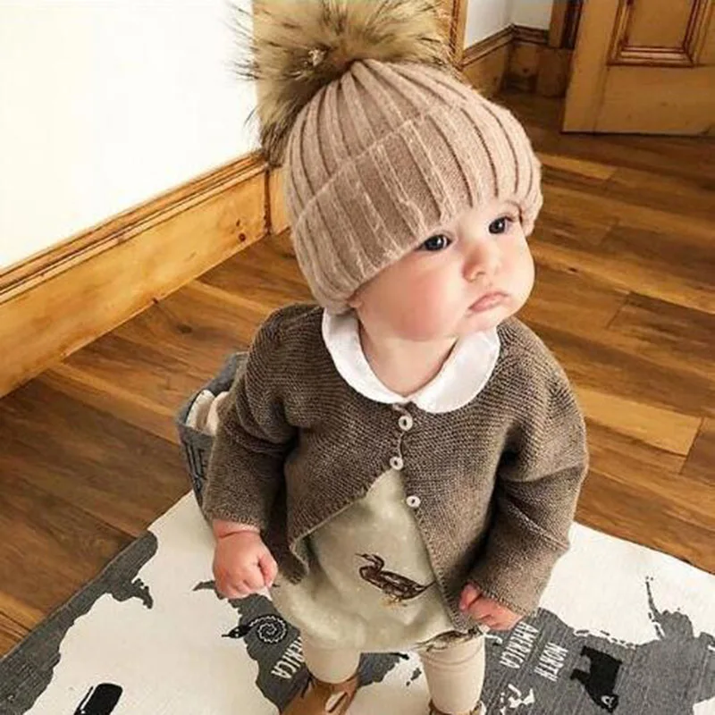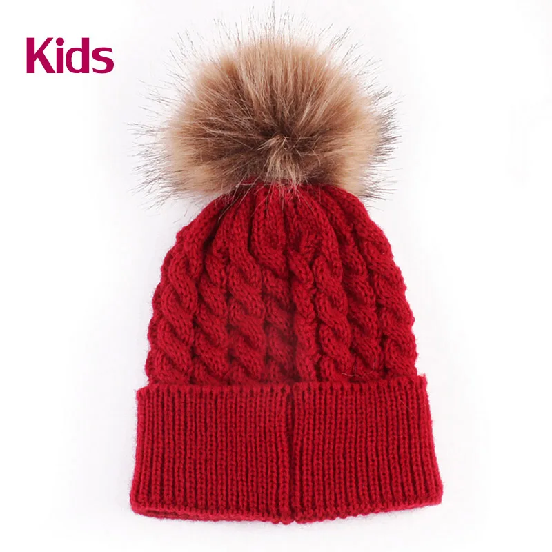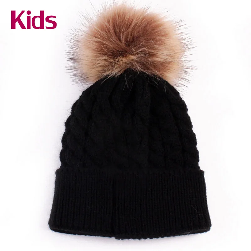 Baby Fur Pompom Hat: Kids Winter Thicken Keep Warm Hats