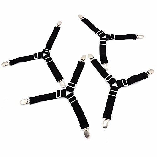 1.Easy to put on and keeps sheets in place and no more fixing sheets, adjustable length allows desired tension. 2.Built in plastic clenching system protects fabric from harm. 3.Fit to fitted and flat sheets on different type of beds,no matter your bed is standard size, odd shaped beds, foam beds, pillowtop beds,and more. 4.Never worry about messy or wrinkled sheets since you used this sheet fasteners. 5.30 DAYS Money Back Guarantee