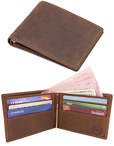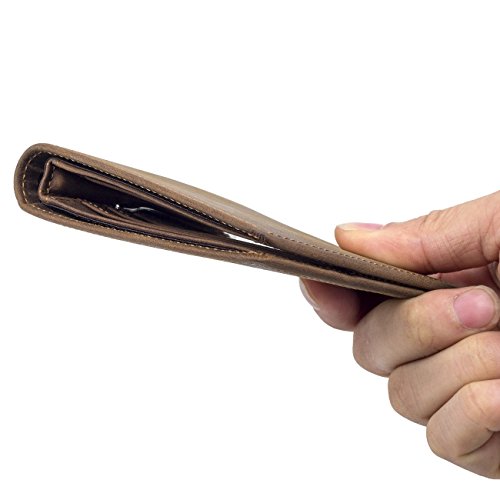 Binding : Apparel Product Description RFID Blocking Genuine Full Grain Leather Wallet. Come with free leather keychain. This wallet is made with crazy horse leather, which are full grain leather treated to feel and look aged while retaining its toughness. The more you use it, the better and more unique it looks. A scratch or rub turns the leaterh fibers to a different shade. They are also water resistance. RFID chips work by using radio waves to communicate. Credit card's RFID information is vulnerable by just being closer to these devices. RFID hackers can scan you through your pocket. Our RFID blocking wallets use military-grade blocking material and creates firewall to encase your cards. 0