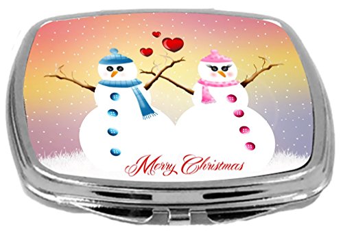 Rikki Knight Pink and Blue Snowman in Love Illustration Design Compact Mirror, 17 Ounce