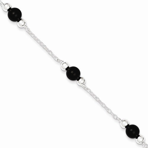 Solid 925 Sterling Silver 9inch Polished Black Simulated Onyx Bracelet Anklet 9"