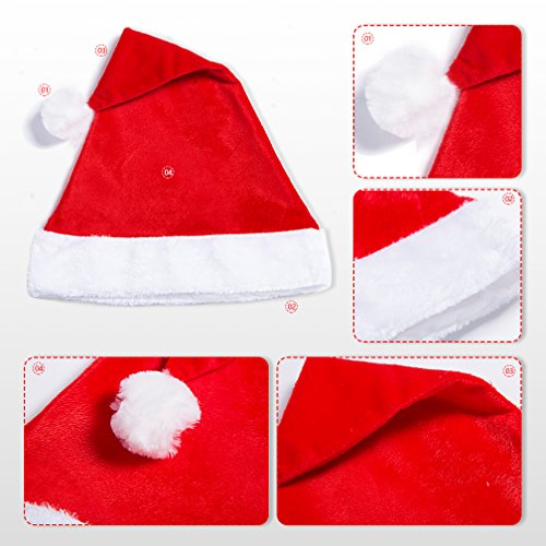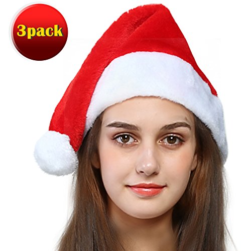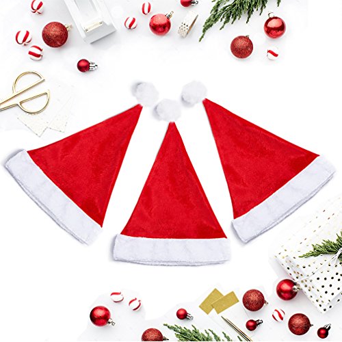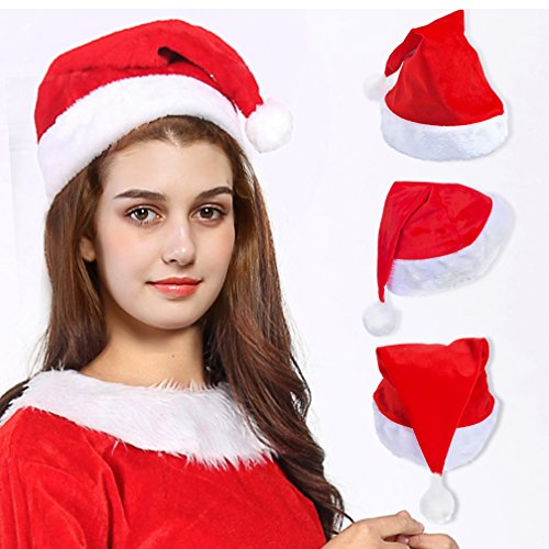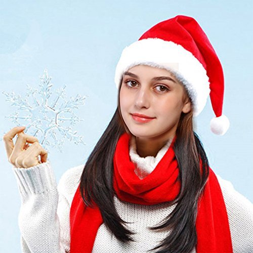 - PRMEMIUM MATERIAL:Our Santa Hat is made of Red plush material with faux fur cuff and white pom-pom on the top.Soft to the touch but durable, it can protect your head away the cold weather,Comfortable material and great value!This is a great Christmas Santa hat and can be worn many times throughout Christmas!
