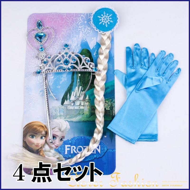 「店内ドレスと一緒に購入の場合は送料無料」アナと雪の女王 シンデレラ用アクセサリー カツラ ステッキ 王冠 手袋 4点セット 可愛い クリスマス パーティグッズ かわいい プリンセスグッズ