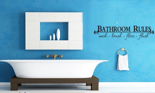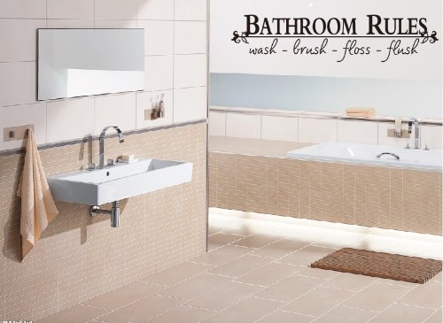 Bathroom Rules Wash Brush Floss Flush Quote Saying Wall Sticker Home Decal Decor for Bathroom