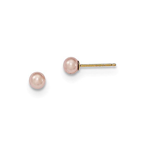 Solid 14k Yellow Gold 4-5mm Purple Round FW Cultured Pearl Stud Earrings