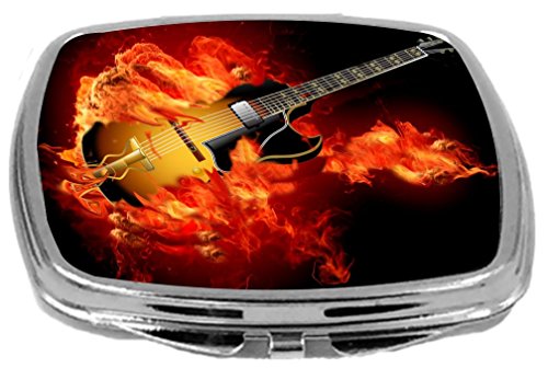 Rikki Knight Compact Mirror, Flaming Guitar