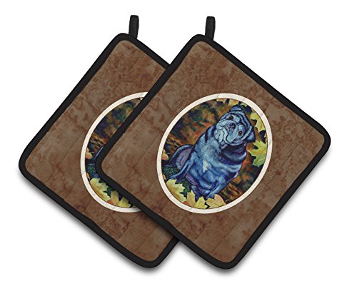Caroline's Treasures Old black Pug In Fall Leaves Pair of Pot Holders 7159PTHD, 7.5HX7.5W, Multicolor