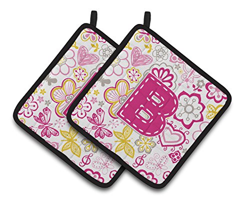 Caroline's Treasures Letter B Flowers & Butterflies pink Pair of Pot Holders CJ2005-BPTHD, 7.5HX7.5W, Multicolor