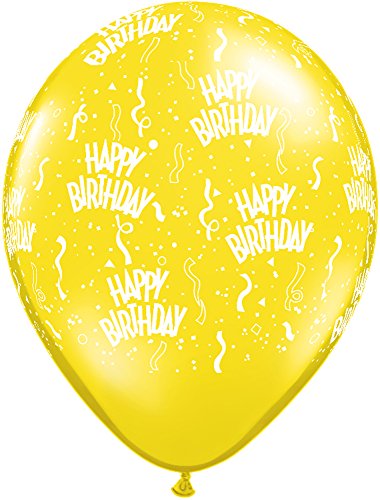 LA Balloons 37093 "Birthday-A-Round" Qualatex Latex Balloons (50 Pack), 11", Citrine Yellow