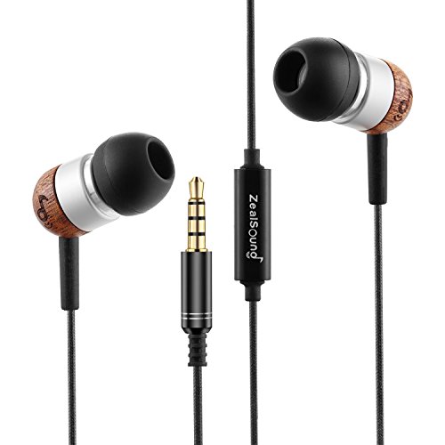 -. Title : ZealSound HDE-100 In-ear Noise-isolating Wood Headphones with Mic, Fiber Cable -Black