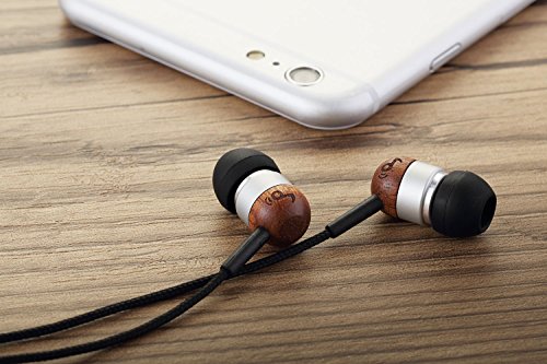 -. Feature : Stunning wood housing brings you closer to nature and produces a warm, rich sound / 10mm neodymium magnet drivers for exceptional, pounding bass; gold-plated 3.5mm audio jack for no-loss sound connection to your audio device / Built-in microphone and one button remote for answering calls; 53 inches tangle-free fiber cable / Include cable clip to massively reduce microphonics, and the 3 sizes of soft silicone ear tips provide a perfect, custom and noise reducing fit / Compatible with iPhone, iPod, iPad, Android devices, mp3 players, CD players and more