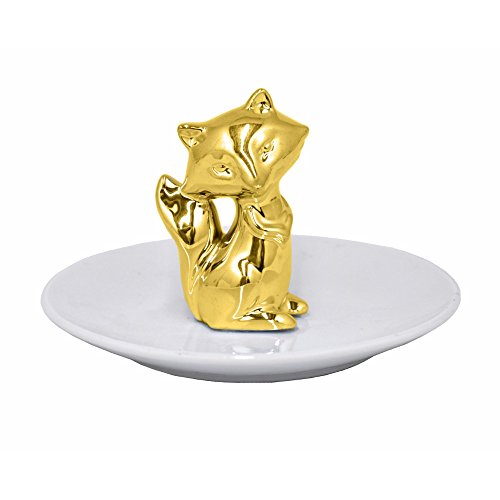 Benzara Ceramic Fox Figurine with Plate-Gold Accents