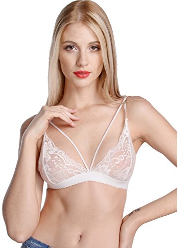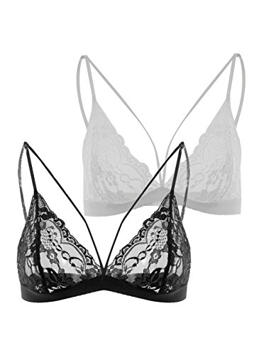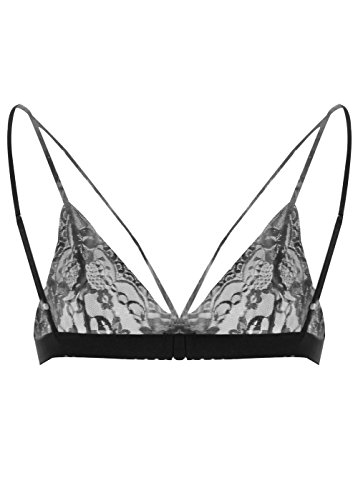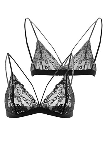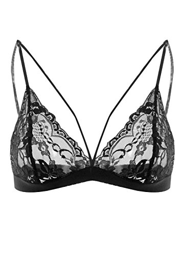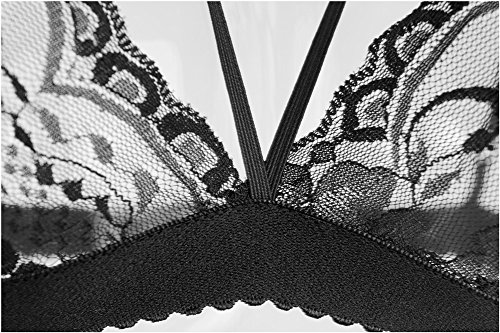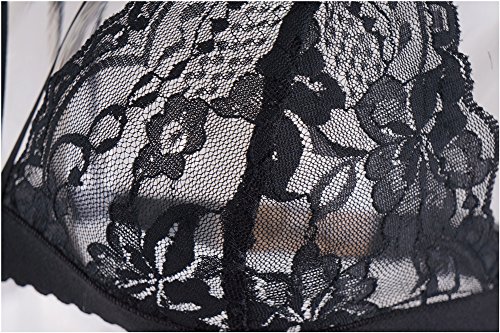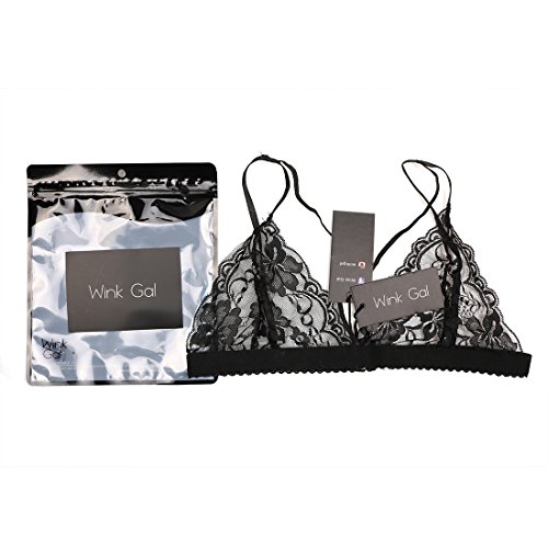 Wink Gal Women's Sexy Deep V Full Lace Thin Band Bralette Colour Black Size L