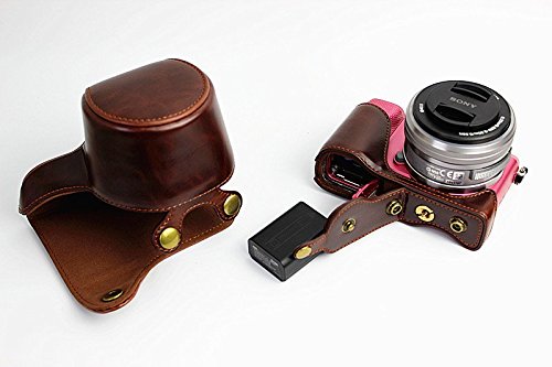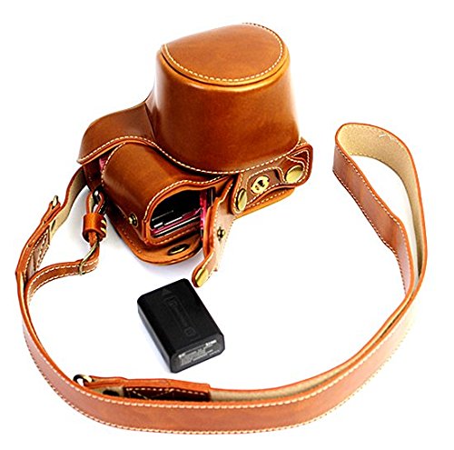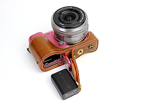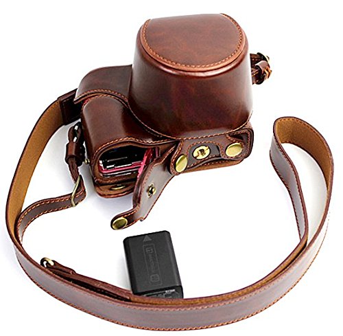 MoreGift4U Voller Schutz Bodenoffnung Version Schutz-PU-Leder Kamera Tasche mit Stativ-Design-kompatibel fur Sony ILCE5000 A5000 mit Schulter-Ansatz-Bugel-Gurt