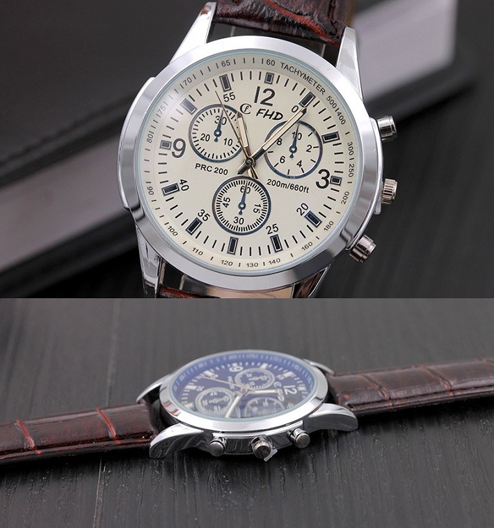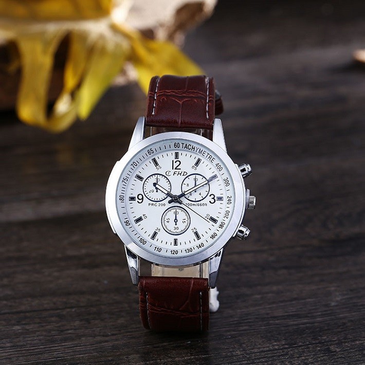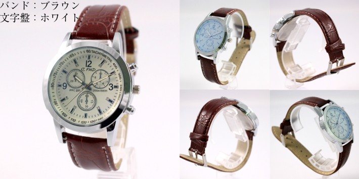 時計 腕時計 メンズ レザー バンド クロコ風 アナログ ブラウン ホワイト