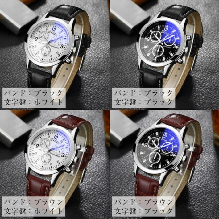 時計 腕時計 メンズ レザー バンド クロコ風 アナログ ブラック ホワイト