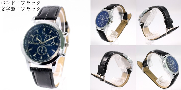 時計 腕時計 メンズ レザー バンド クロコ風 アナログ ブラック
