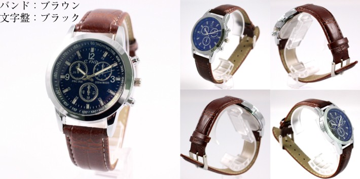 時計 腕時計 メンズ レザー バンド クロコ風 アナログ ブラウン ブラック