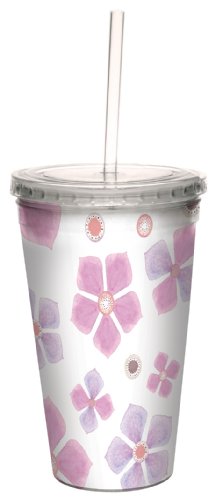 -. Feature : Quality 16 ounce double-walled acrylic cool cup with reusable straw / BPA Free and Proposition 65 compliant / For cold beverages only - resists condensation / Hand washing recommended / Hard to find Sweet Pink Flower Petals art by Michelle Rummel