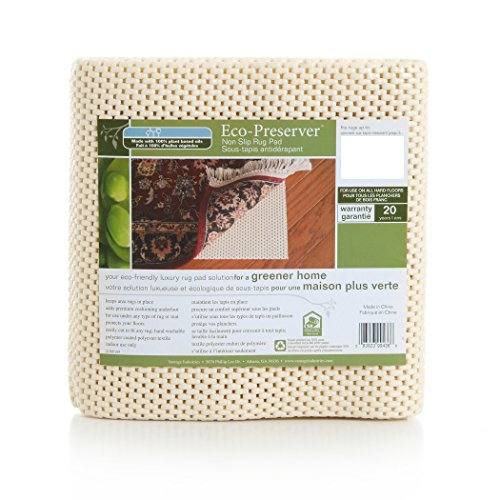Our Eco Preserver non-slip rug pad is designed for a greener home and with your hard floors in mind. We use nothing but the best materials possible to make sure your hard floors are protected and all products meet our high quality standards. Our pad is made of hand washable, polymer-coated textile derived from plant based oils. Rug pads help secure your rug to reduce wrinkles and prevent rug from slipping and creates a cushioned layer to allow for more effective vacuuming. The added layer of support reduces crushing of pile thus extending the life of the rug. And as you can expect only from Con-Tact Brand® brand products, our high quality rug pads lead the industry in superiority and value. Con-Tact Brand is the only patented (pending) rug pad that replaces petroleum based oils with plant based oils, while maintaining the integrity and design of the product. Our commitment to the research and development of innovative new products helps to ensure that we continue to be the industry leaders. We stand behind our products to be superior and sustainable. One-year limited warranty.Feature