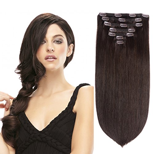 15" Remy Human Hair Clip in Extensions for Women Dark Brown(#2) 7 Pieces 120grams/4.23oz