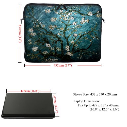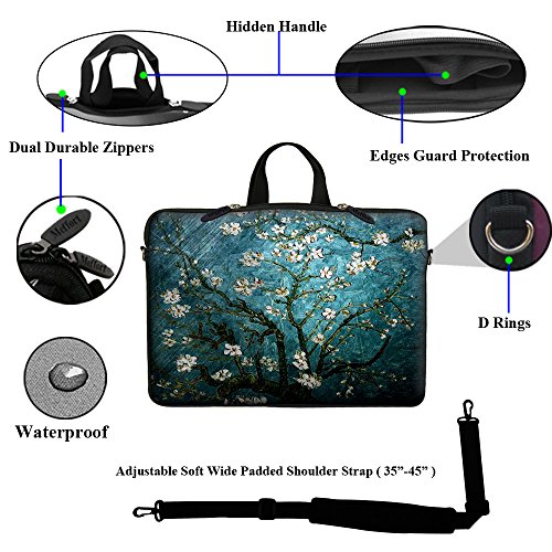 Meffort Inc 17 17.3 inch Neoprene Laptop Sleeve Bag Carrying Case with Hidden Handle and Adjustable Shoulder Strap - Vincent van Gogh Almond Blossoming