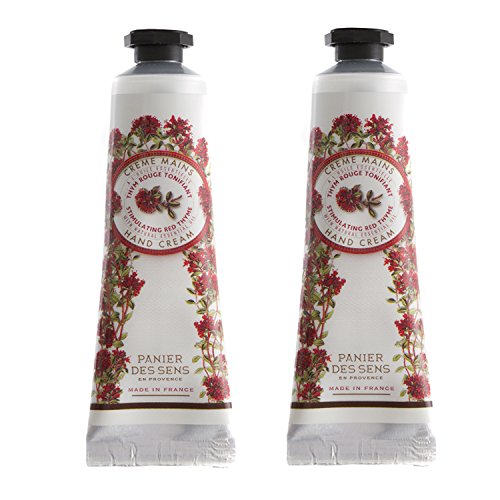 Panier Des Sens hand creams with natural, stimulating red thyme essential oils from Provence in "Red Thyme" fragrance. You will receive a 2-pack that includes two 1-ounce tubes of hand creams.