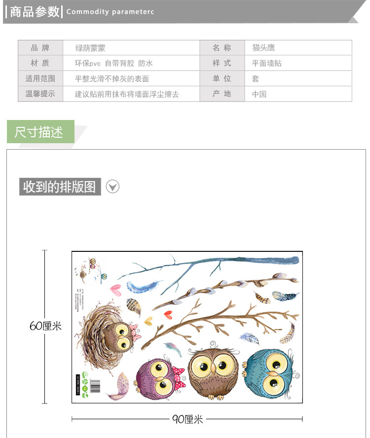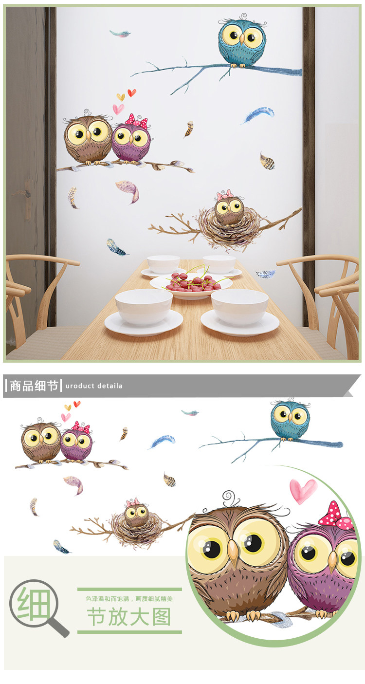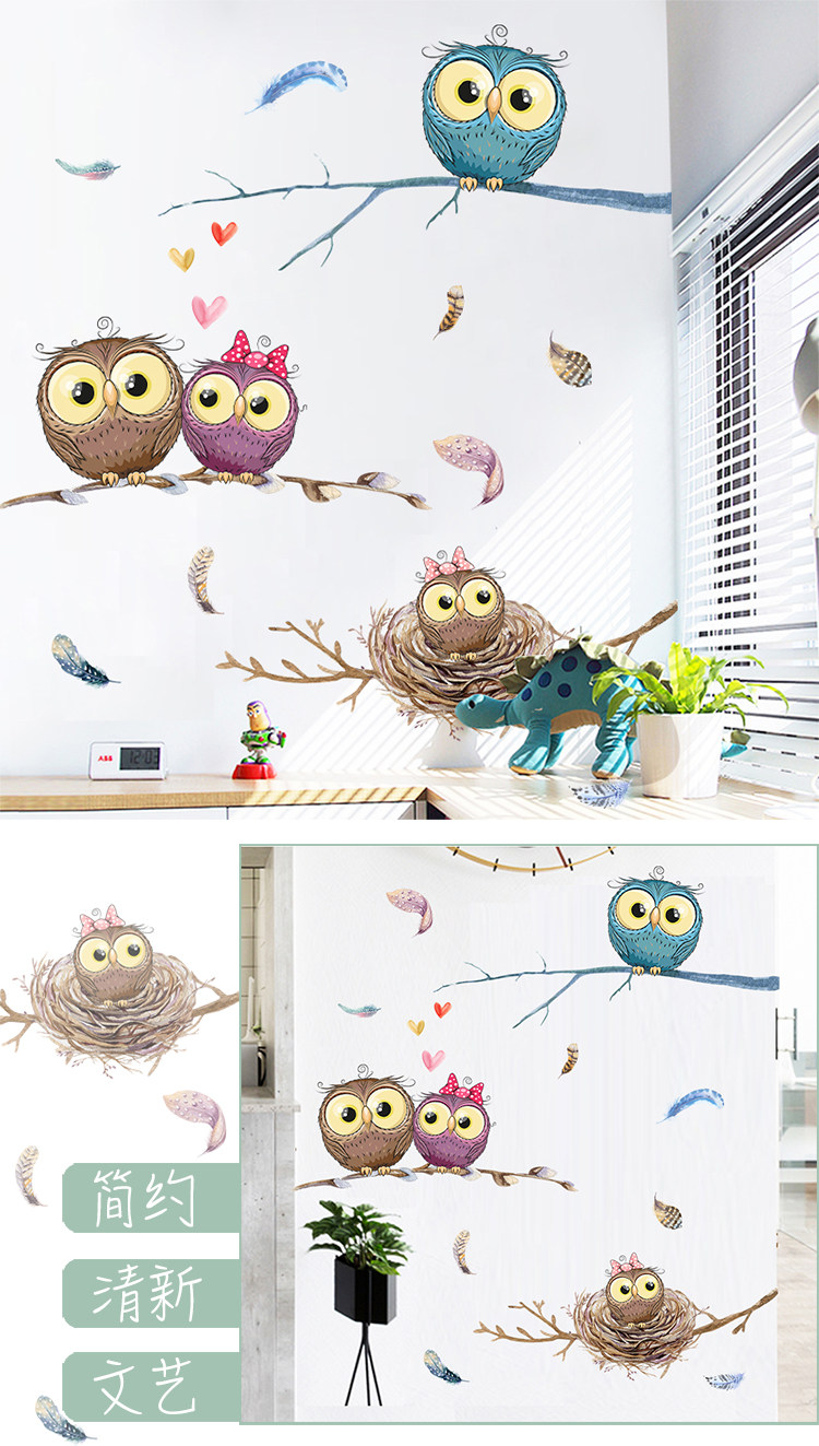 小清新猫头鹰创意墙贴卧室房间床头温馨墙纸自粘贴画墙壁装饰贴纸