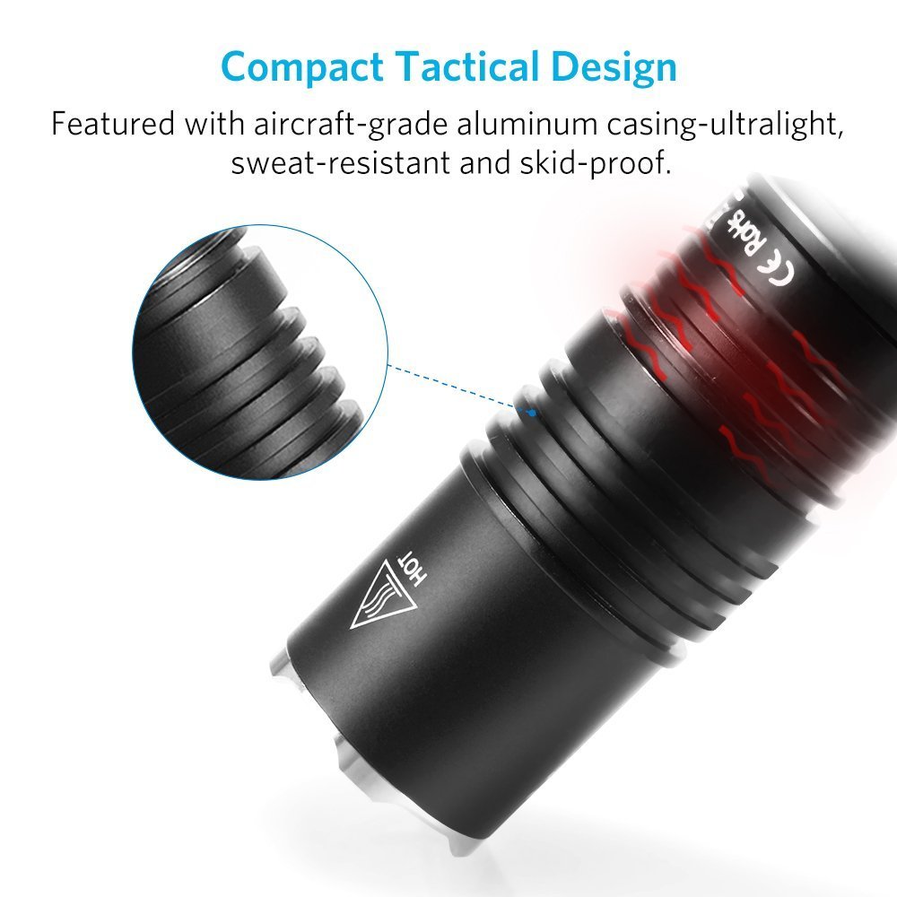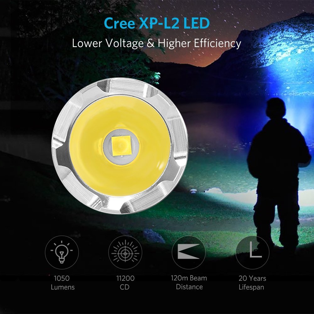 When clicking again, change the light mode in order of low (50 LM), mid (200 LM), high (600 LM), turbo (1050 LM).