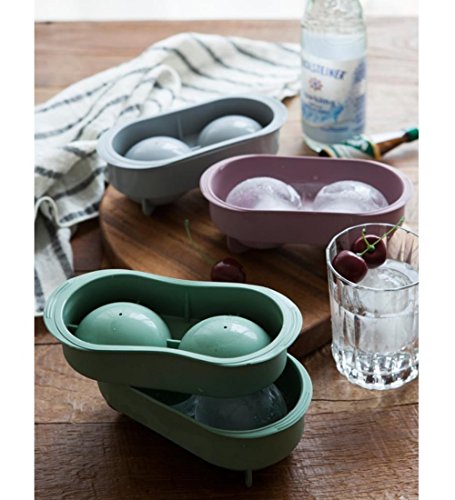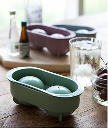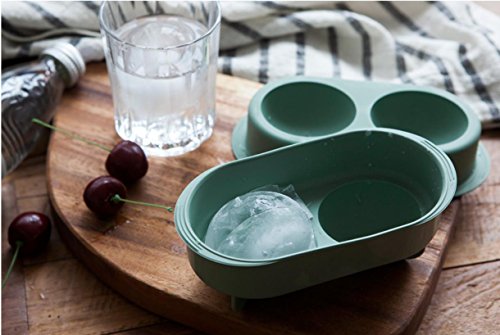 100% Silicon Pastel color Large Sphere Ice Ball cube Maker, 2 Molds, Eco-Friendly Flexible tray (Green)